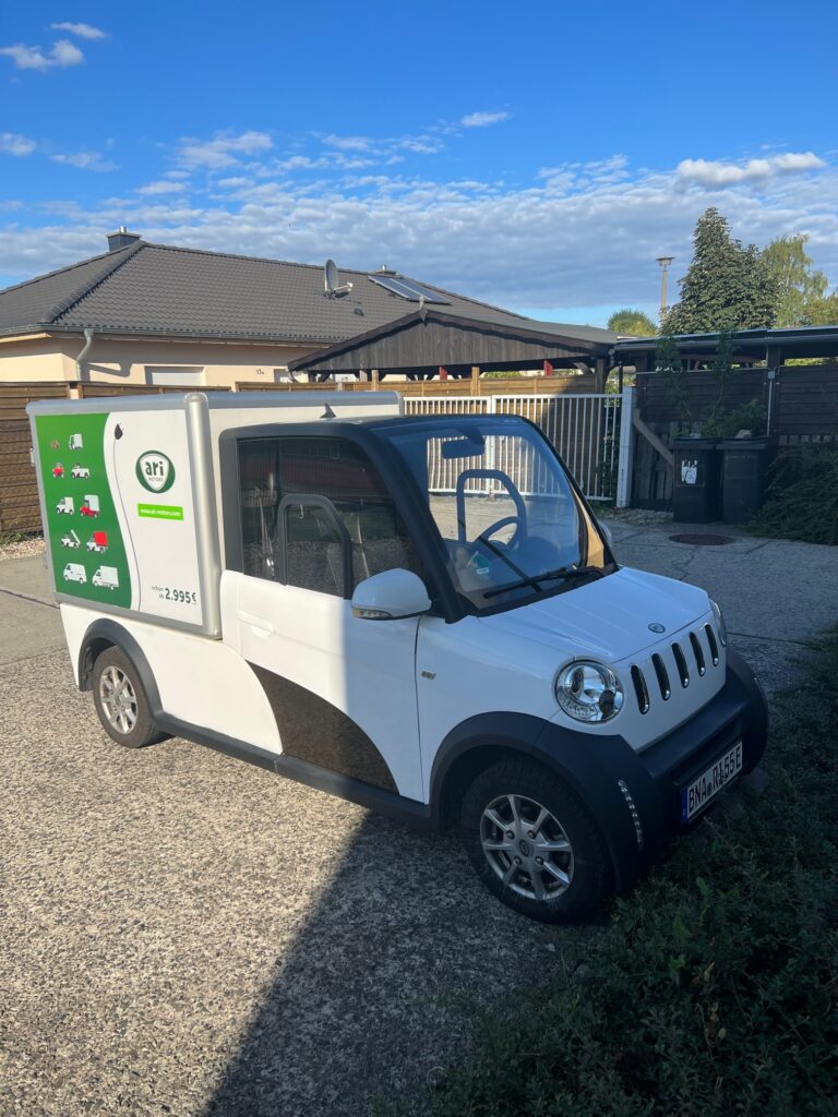 Auch für den Bereich der Kundenabholungen werden derzeit Elektro-Kleintransporter getestet. Hier im Test der ARI 458 mit Koffer